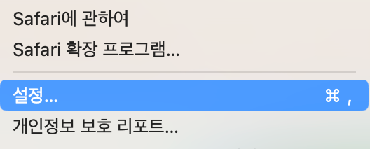 사파리를 켜시고 상단 메뉴바를 보시면 사파리가 보이고 그걸 탭하시면 아래 롤링되는 카테고리 중
