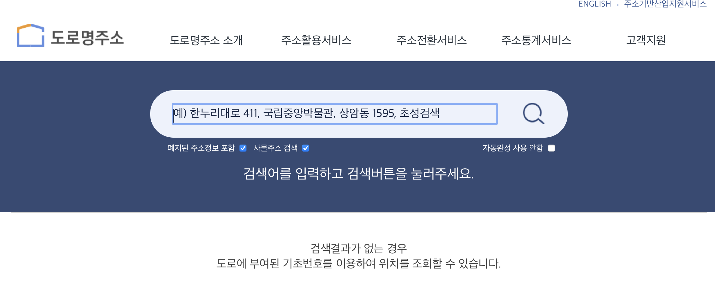 도로명주소 시스템 - https://www.juso.go.kr/support/AddressMainSearch.do?searchType=TOTAL