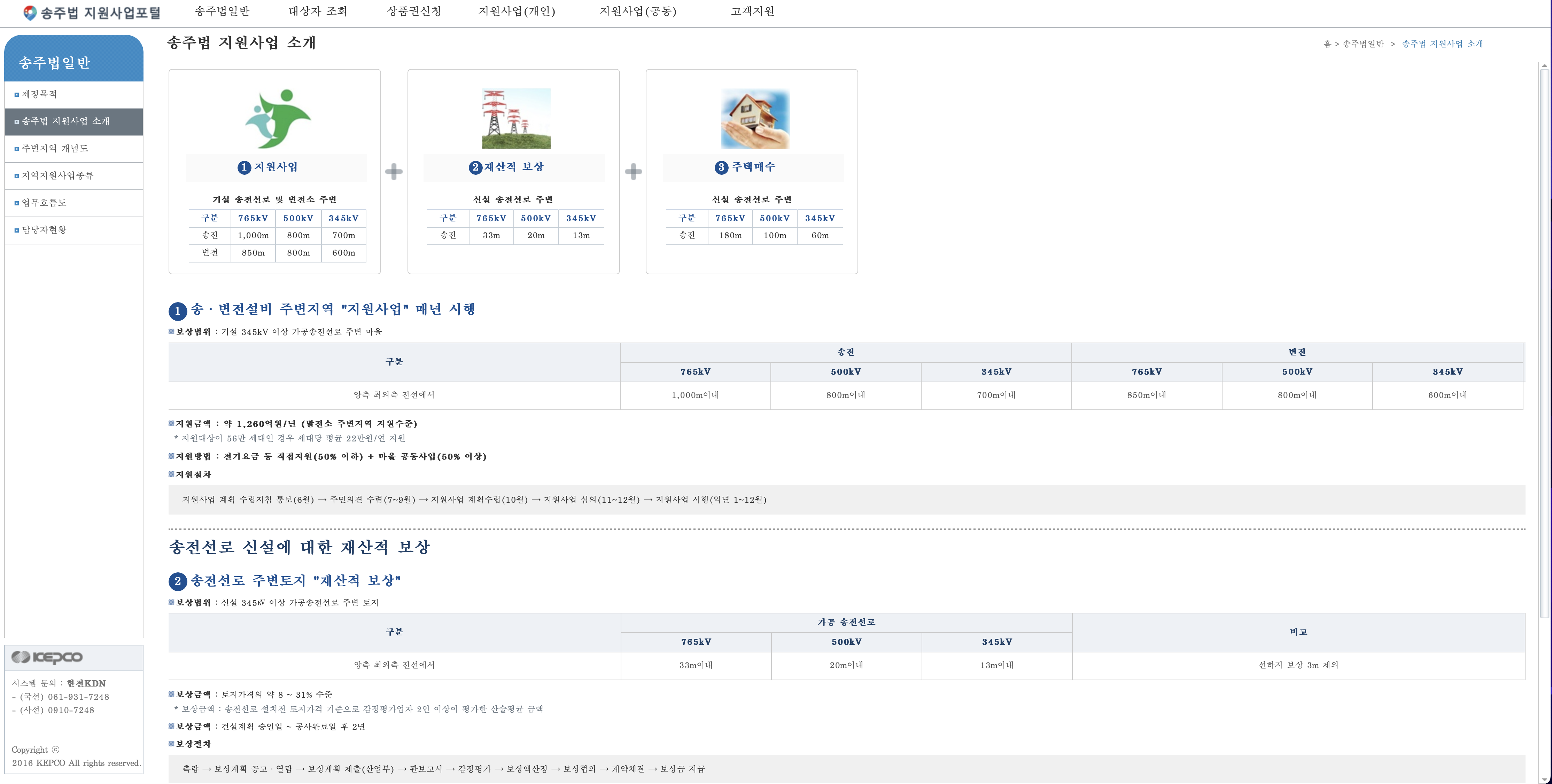 송ㆍ변전 설비의 설치로 인해 그 주변지역에는 잠재적인 사고위험, 경관훼손 및 지가하락 등의 피해가 발생하고 있음에도, 현재 송ㆍ변전 설비 주변지역의 보상 및 지원에 관한 사항을 법률에 구체적으로 규정하고 있지 아니하여, 주변지역에 대한 충분한 보상 및 지원이 이루어지지 않고 있음.