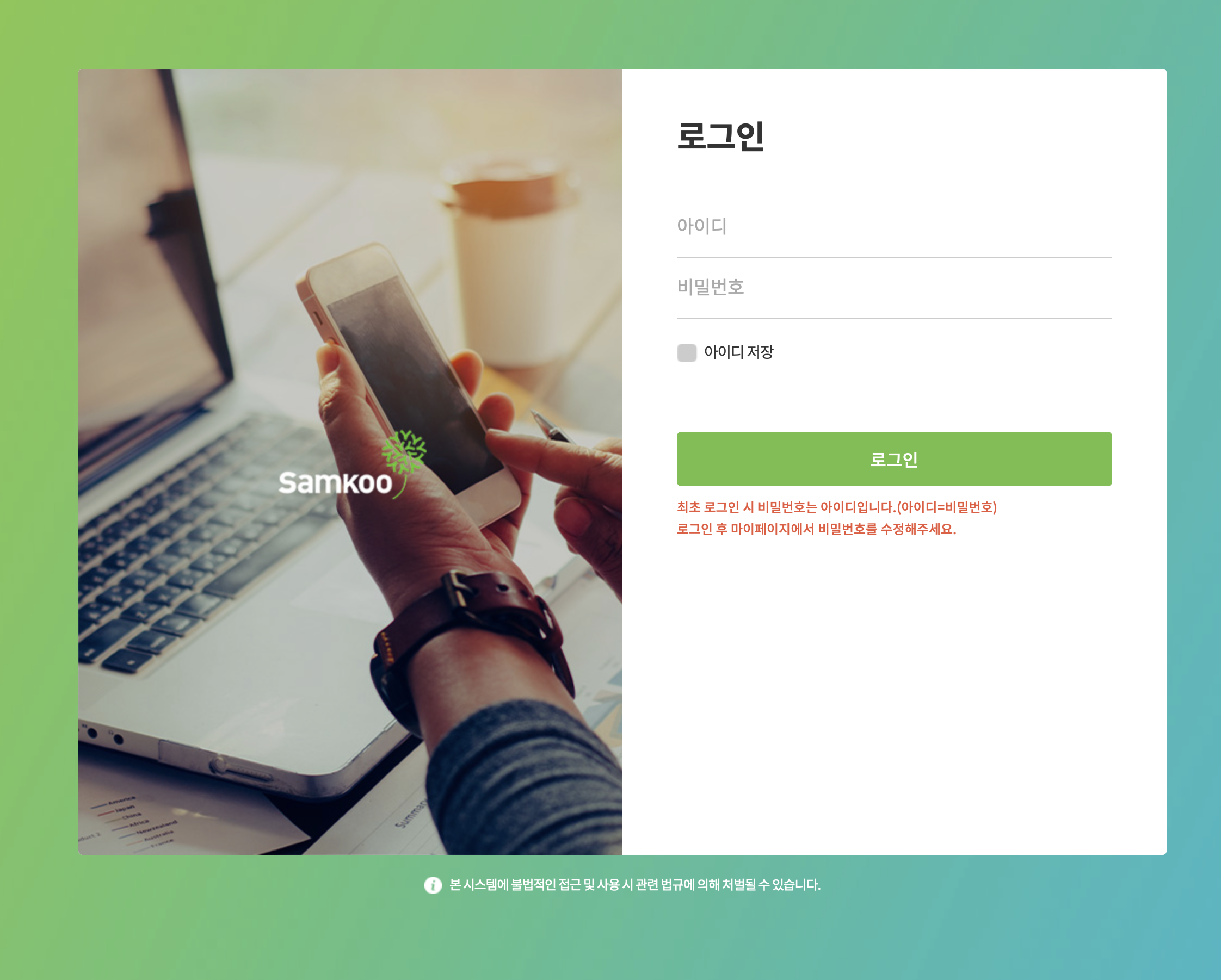 * 최초 로그인 시 비밀번호는 아이디 (아이디=비밀번호)