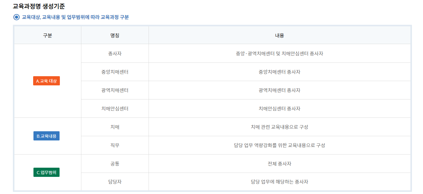 국가치매교육 교육과정명 안내