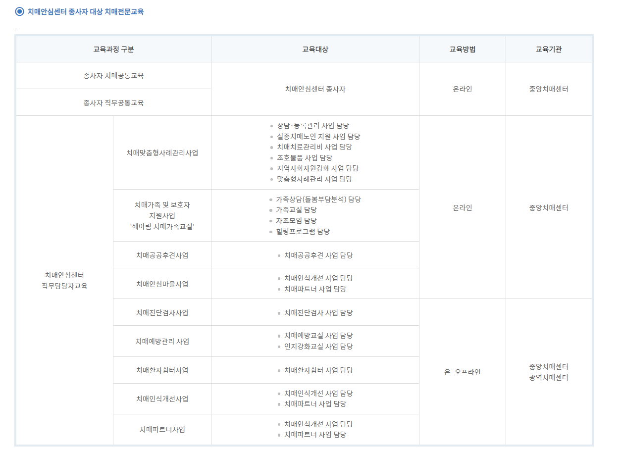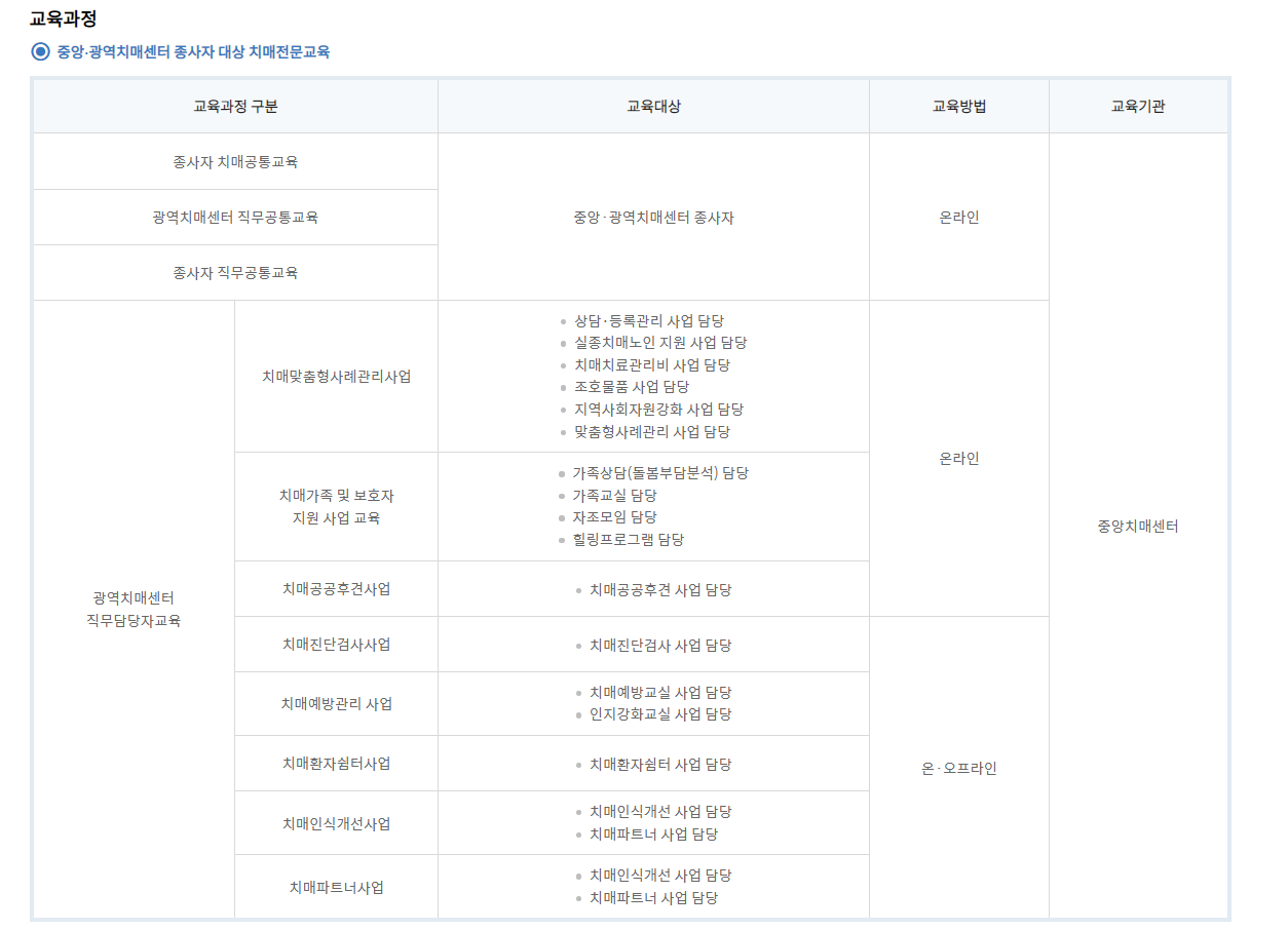 치매 관련 종사자의 역량강화를 위해 체계적이고 표준화된 양질의 교육을 제공하고자 보건복지부, 중앙치매센터 및 광역