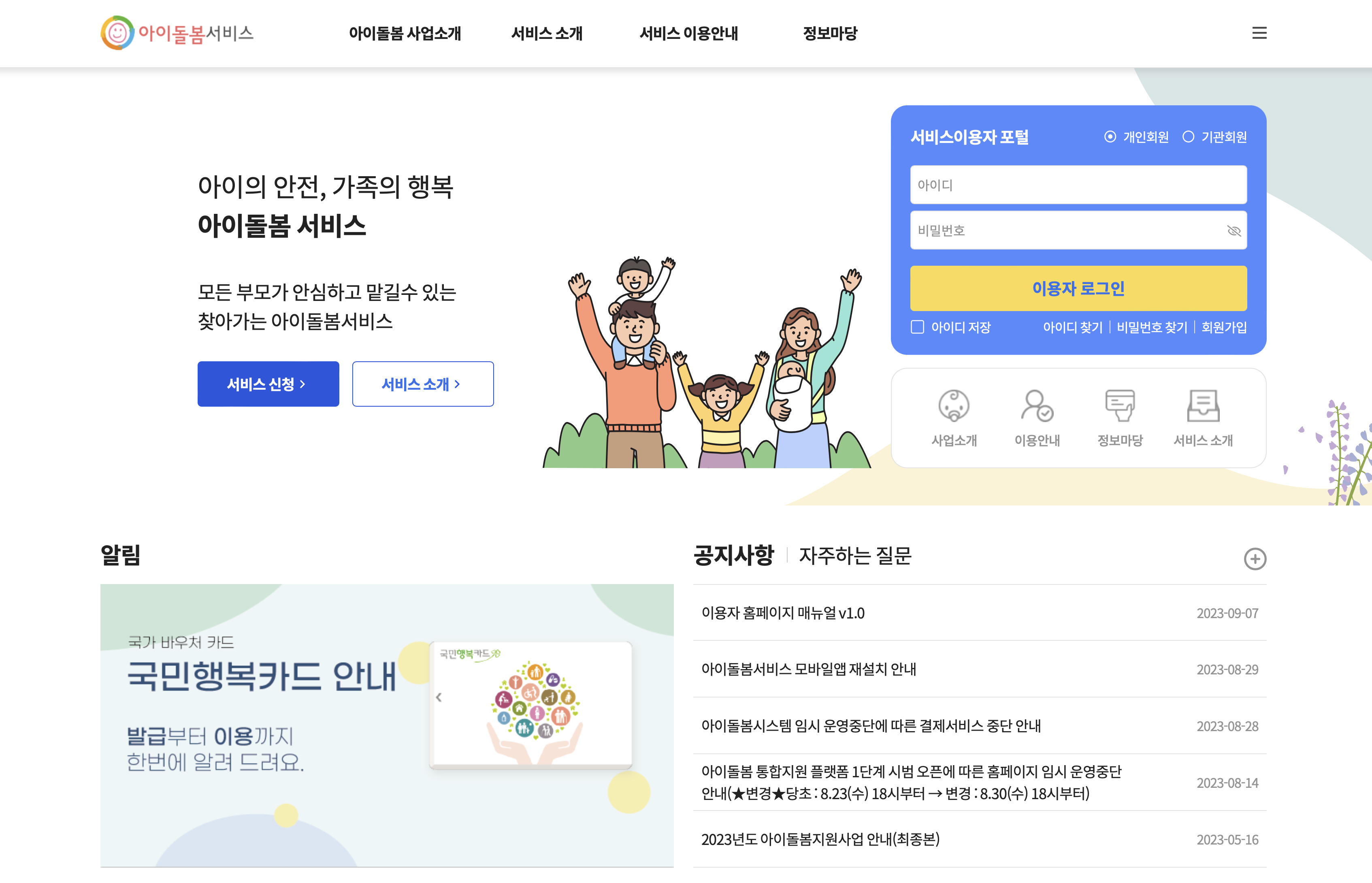 아이돌봄 서비스 이용자 홈페이지