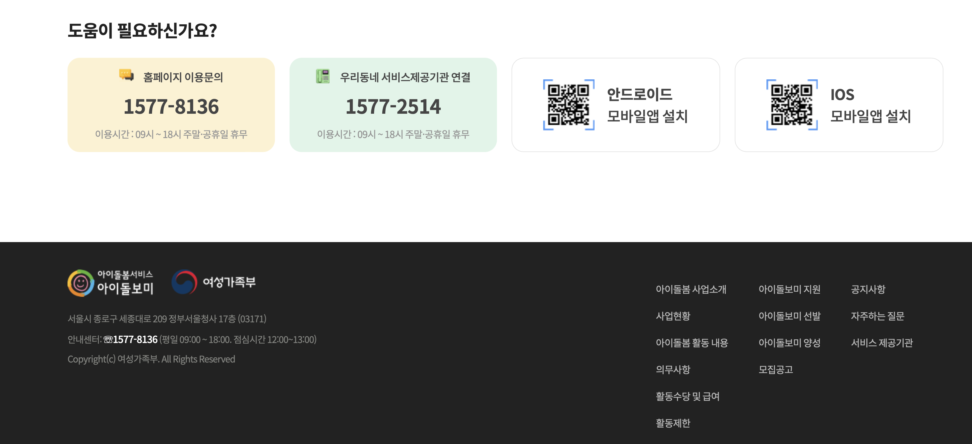 아이돌봄서비스 아이돌보미 : 서울시 종로구 세종대로 209 정부서울청사 17층 (03171)