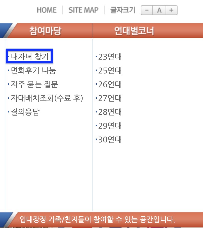 내 자녀 찾기 및 훈련소 일별 식단표