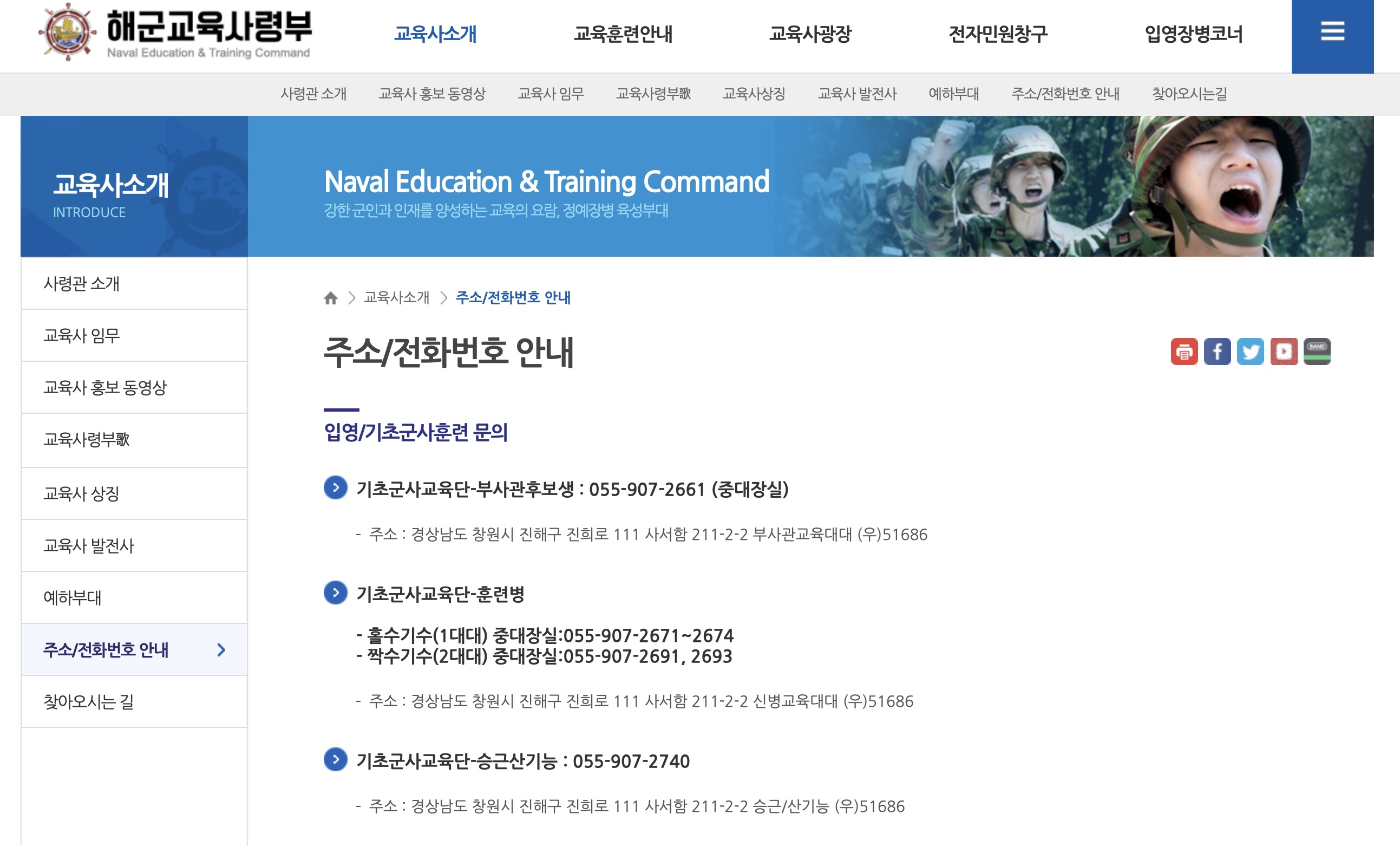 경상남도 창원시 진해구 진희로 111 사서함 211-2-2 신병교육대대 (우)51686